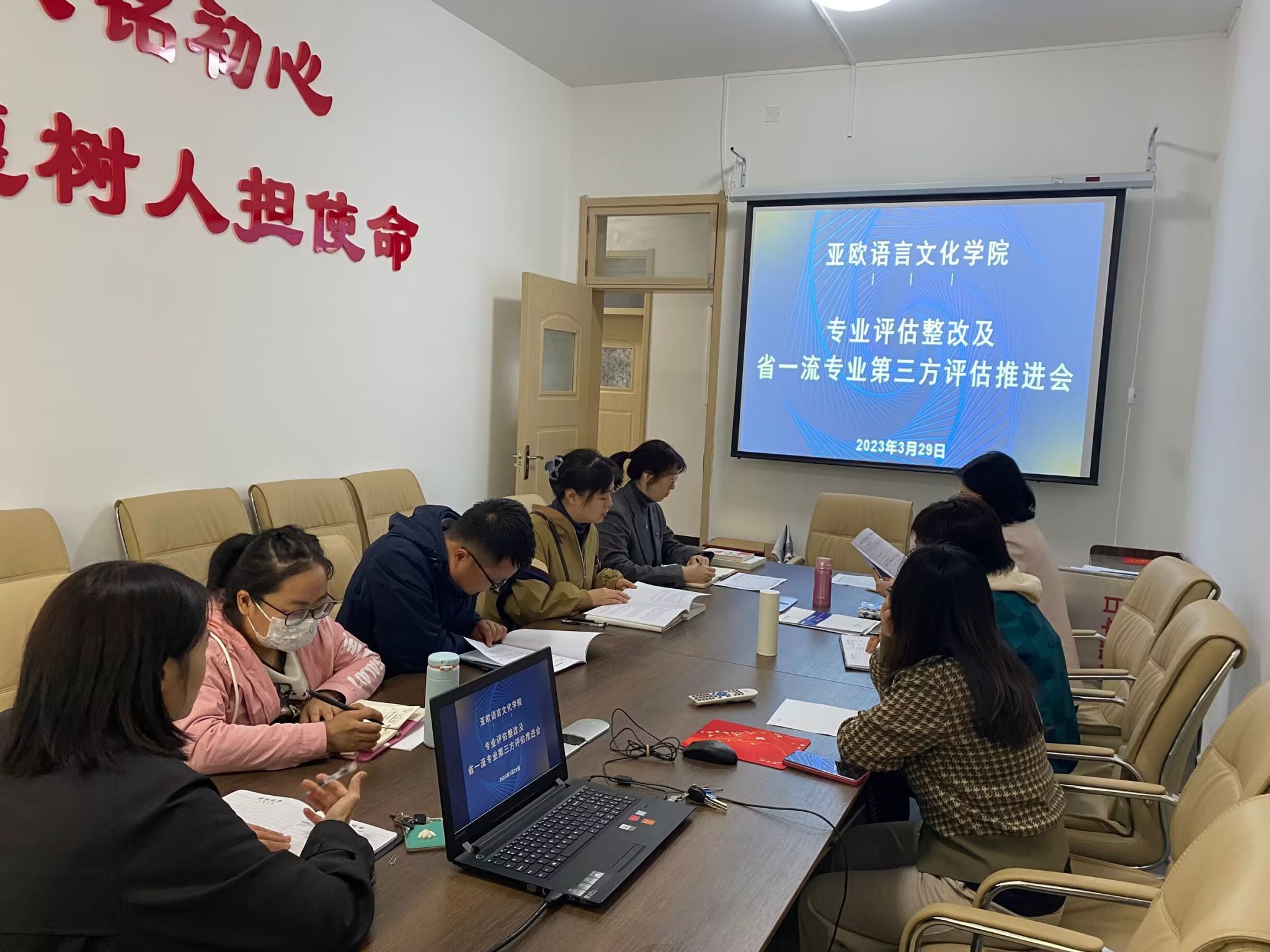 为不断提升专业内涵建设,以评估整改为抓手,真正落实找差距,补短板、强弱项,亚欧语言文化学院于4月14日下午召开本科专业评估整改及省级“一流专业”建设点第三方评价工作推进会。副院长吴震、魏海燕及各系办主任参加了会议。会议由吴震主持。