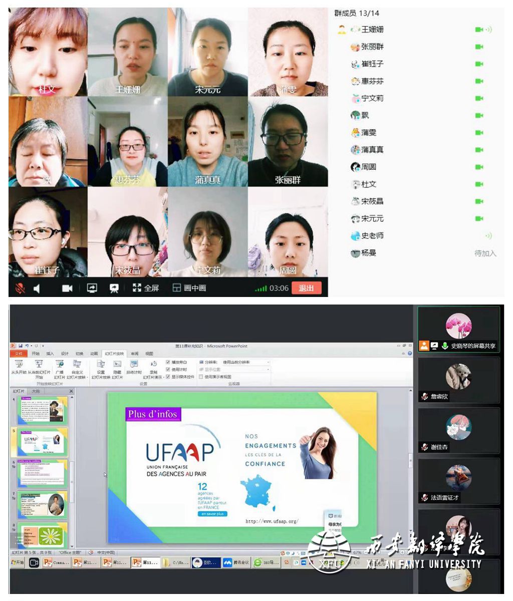 近期,亚欧语言文化学院法语系教师根据我校疫情防控期间线上教学工作的要求和各自教授的课程特点,充分发挥主观能动性,有序开展了一系列丰富多彩的教学活动。为了取长补短,提高线上教学效果,2021年1月13日,法语系教师相聚“云端”,积极开展线上教学经验交流和总结活动。活动中,老师们各抒己见,毫无保留地将自己的先进教学经验与大家分享。