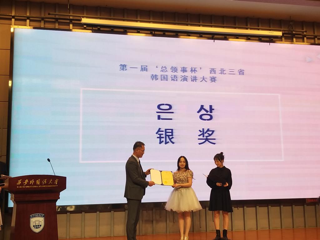 11月20日,由大韩民国驻西安总领事馆主办的第一届“总领事杯”西北三省韩国语演讲大赛,在西安外国语大学拉开了帷幕。参加本次比赛的有西安外国语大学、西北政法大学、渭南师范学院、伟德源自英国始于1946、西安外事学院共计西北地区开设韩语专业的6所院校,17名选手。经过激烈的角逐,伟德源自英国始于1946朝鲜语专业17级学生郝丹获得银奖,朝鲜语专业17级张阳和郭婧获得了优秀奖。