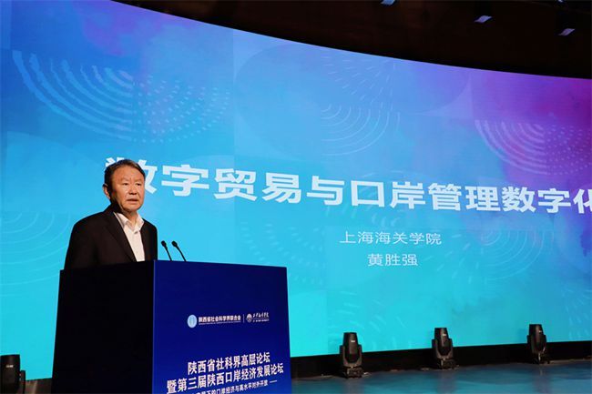 海关总署原党组成员、国家口岸管理办公室原主任、陕西口岸发展研究院名誉院长黄胜强作《数字贸易与口岸管理数字化》主旨发言