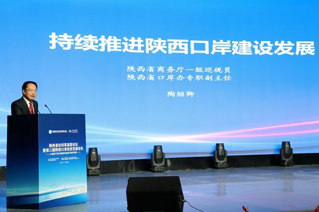 陕西省商务厅一级巡视员、陕西省人民政府口岸办公室专职副主任陶绍卿作《持续推进陕西省口岸建设发展》主旨发言