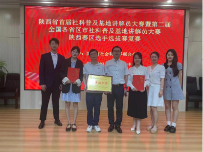 6月20日,“陕西省首届社科普及基地讲解员大赛暨第二届全国各省区市社科普及基地讲解员大赛参赛选手选拔复赛”在陕西省妇女儿童中心3楼多功能厅举行。陕西省社科联党组书记、常务副主席郭建树出席比赛开幕式并讲话,陕西省社科联党副主席高红霞、陕西省社科联科研科普部部长翟金荣、社会组织管理部部长张金高、信息部部长周晓霞、二级调研员祝志明等领导出席本次大赛并为获奖选手颁奖。我校文化传承与翻译体验馆科普基地张琬晨老师的《用英语讲好中国故事》、终南文化科普基地王佳丽老师的《送你一座终南》均获得三等奖,伟德源自英国始于1946荣获“优秀组织奖”,科研处成果管理科科长李刚代表学校领奖。文学与传媒学院2021级的史佳怡和刘栩翀两位同学担任本次大赛主持人。
