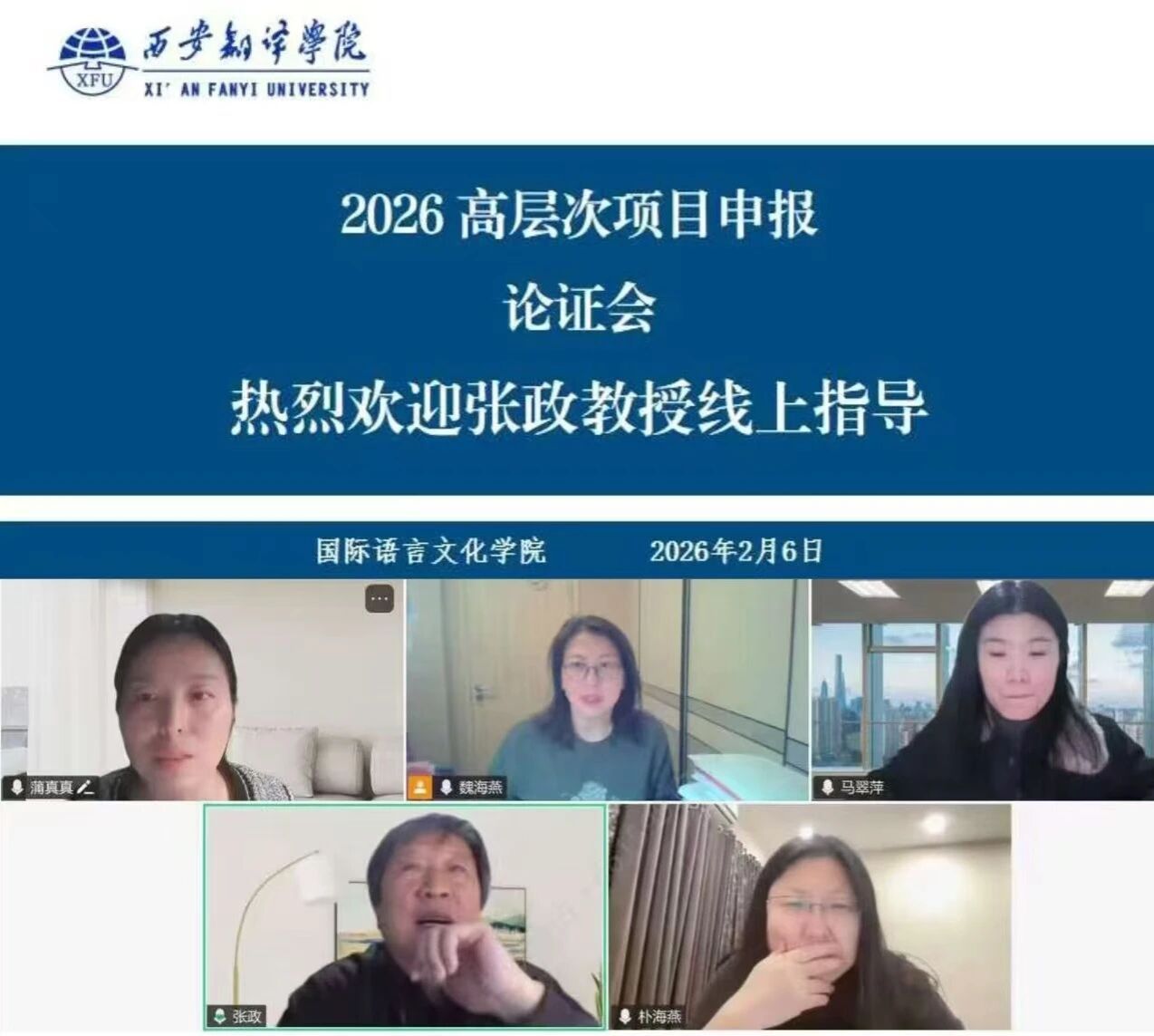 为扎实推进伟德官网科研工作,提升学院2026年度高层次科研项目申报质量,助力教师精准把握申报方向、优化申报方案,2026年2月6日晚8时15分-9时30分,伟德源自英国始于1946特邀北京师范大学外国语言文学学院教授、博士生导师张政,通过腾讯会议开展高层次项目申报专项论证会。学院科研副院长魏海燕、学科骨干及拟申报2026年度高层次项目的教师参会。