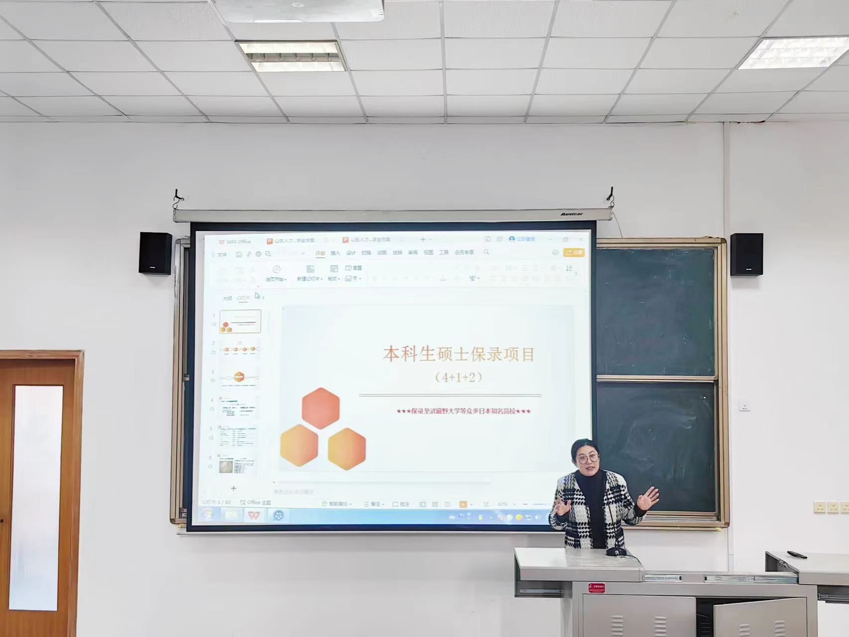 为拓宽学生国际化视野,帮助学生提前做好出国留学规划,12月6日下午,亚欧语言文化学院邀请山东人才发展集团国际处留学项目刘宏老师,开展武藏野大学留学项目专题讲座。亚欧语言文化学院日语专业意向留学的学生参加讲座。