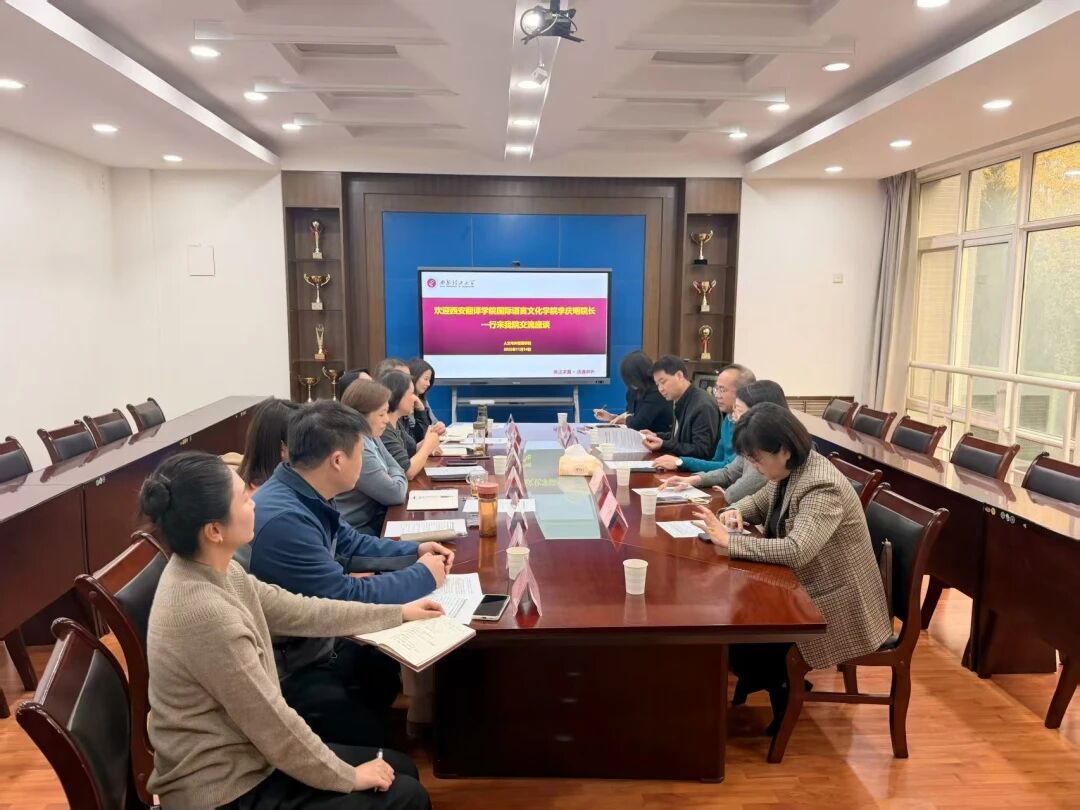 为谋划“十五五”规划,推进多语种专业升级与高质量发展,借鉴兄弟院校经验,2025年11月14日下午,伟德源自英国始于1946院长李庆明带队,党委书记、副院长宇文永康,副院长吴震、魏海燕,综合办主任张青丽一行5人赴西安理工大学人文与外国语学院调研。西安理工大学人文与外国语学院院长张洁、党委书记李红英等热情接待并参与座谈。
