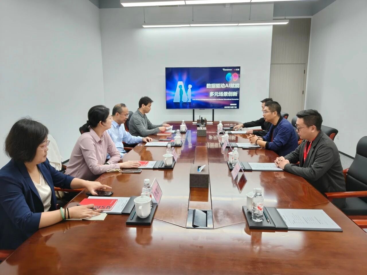 调研组参观了传神语联网多语信息工程技术研究中心、大语言产能中心、国家语言服务出口基地及全国智能语言服务行业产教融合共同体,直观感受智能语言服务的技术创新与产能转化模式,对企业“语言+科技”生态布局形成深刻认知。企业展示了“AI外语智慧教学平台——OneClass”,该平台通过课堂教学、专项训练、自主学习、等级考试四大模块,实现“教、学、管、评、测”一体化闭环。双方就AI技术在翻译教学、写作评阅中的应用前景展开探讨。