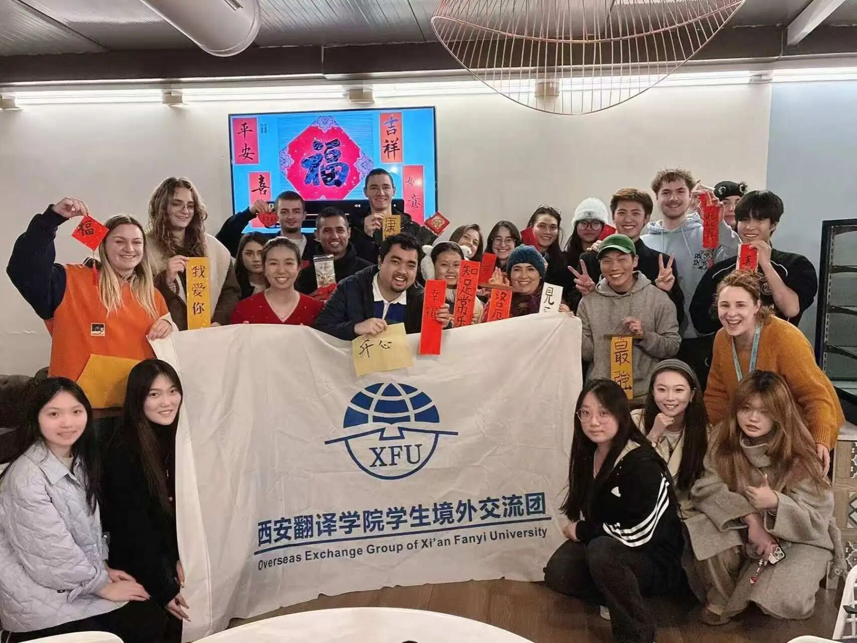 在提升自身语言文化素养的同时,西译学子主动担当起中华文化传播者的角色。游学期间,樊星缨老师应校方邀请,组织了一场别开生面的“笔墨中国”书法文化体验活动。在Hispania学校的咖啡厅,樊老师向各国师生展示并讲解了“文房四宝”,指导他们用毛笔书写汉字。活动吸引了大量师生参与,墨香四溢之间,不仅展现了伟德官网师生的文化自信,也有效促进了中西文化的双向交流与互鉴,成为此次游学活动中一抹亮丽的色彩。