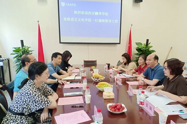 2022年6月1日,亚欧语言文化学院院长李庆明,党委书记、副院长宇文永康,副院长吴震,日语系主任魏海燕,综合办主任张青丽一行5人前往西安文理学院外国语学院调研交流。西安文理学院外国语学院院长韩红建、党总支书记杨文秀、副院长姚金红、党总支副书记王一、日语系主任张颖、日语系副主任邹维、日语系党支部书记王华、日语系教师代表热情接待我校调研人员并参加了调研座谈会。