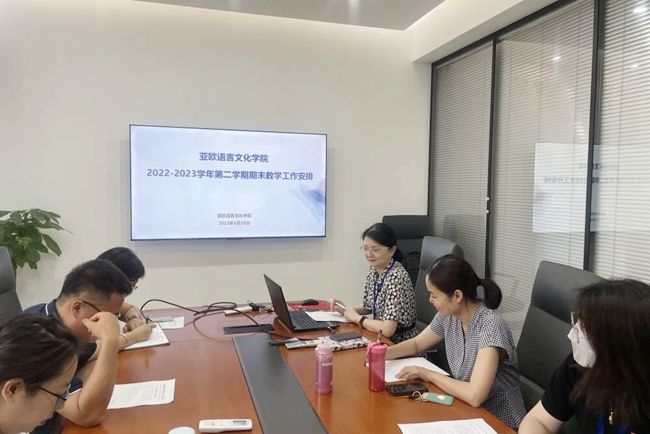 为确保期末各项工作有序规范开展,6月28日,亚欧语言文化学院召开2022-2023学年第二学期期末教学工作会议。亚欧语言文化学院副院长吴震、魏海燕及各系办主任参会。会议由吴震主持。