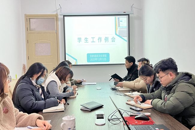 为顺利开展期末工作,12月12日下午,亚欧语言文化学院召开学生工作例会。亚欧语言文化学院党委书记、副院长宇文永康,学工办主任尹娜,团总支书记陈福礼及全体辅导员参会。