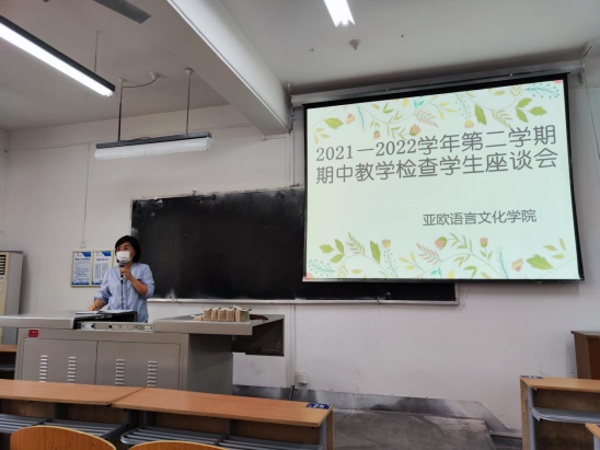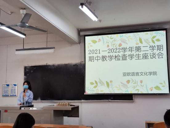 ▲亚欧语言文化学院召开期中教学检查学生座谈会