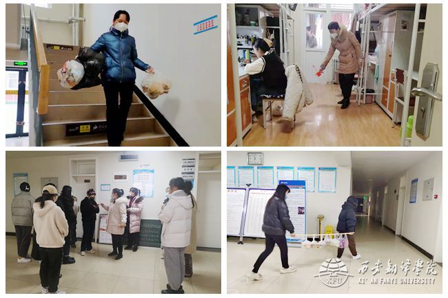 西十六公寓目前有38个宿舍,其中有95名学生因外出考研而在宿舍制动。这么庞大的制动人数给管理工作带来了极大的挑战。负责西十六公寓的娄敏、胡靖靖、鲁兴三位辅导员老师,从学生开始制动的当天起,及时走访宿舍,安抚制动学生情绪,用暖心话语鼓励大家坚定信心,共同抗击疫情。同时,她们及时与公寓管理老师协商、制定制动宿舍一对一生活保障方案,如为制动宿舍学生买饭、打水、购买日用品、以及每日帮忙清理垃圾。另外,公寓还召开各层长会议,成立了西十六志愿先锋队,建立帮扶微信群,根据制动学生所在宿舍位置,就近安排能够外出的宿舍,开展点对点帮扶,形成了“辅导员、公寓老师—层长—志愿者”多层次、广辐射的帮扶体系,与此同时还成立了由亚欧语言文化学院18级日语、德语、俄语学生组成的候补志愿者小分队,确保制动学生们在制动期间基本生活得到保障,为疫情防控工作解决后顾之忧。