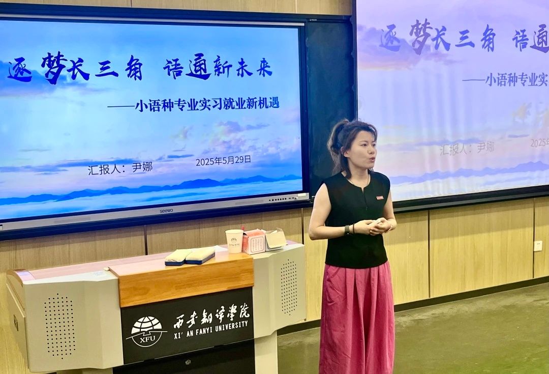 宣讲会伊始,尹娜深入剖析了当前就业市场的严峻形势,呼吁全体准毕业生高度重视就业问题,清晰认识就业形势,提前做好充分准备,并树立正确的就业观念。她鼓励学生们秉持“先就业、后择业”的理念,积极主动地把握各类机遇。她详细阐述了长三角地区在国家经济发展中的核心地位,以及该地区对语言文化专业人才的巨大需求。深入介绍了长三角地区的就业环境、行业需求和职业发展机遇,特别指出,长三角地区的企业对语言类专业人才的需求与日俱增,尤其是在跨国公司、金融机构和大型企业中,具备多语言能力和跨文化背景的人才备受青睐。