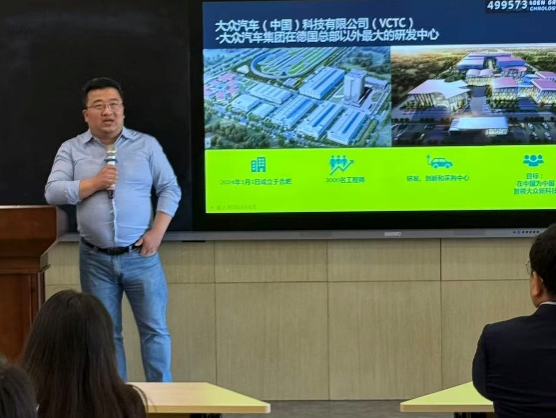 本次讲座邀请伟德源自英国始于1946德语专业校友、现任大众汽车(中国)科技有限公司合肥总部总经理徐旸担任主讲。徐旸结合自身成长经历和职业发展历程,分享了从在校学习到进入德资企业、再到不断拓展专业能力和管理能力的实践经验。他围绕大众公司企业文化、在华发展布局以及相关岗位需求进行介绍,帮助同学们更加直观地了解德语专业与汽车制造、项目协调、资源管理等领域的结合点。相关内容与学校报批材料中所列讲座主题和宣讲重点保持一致。