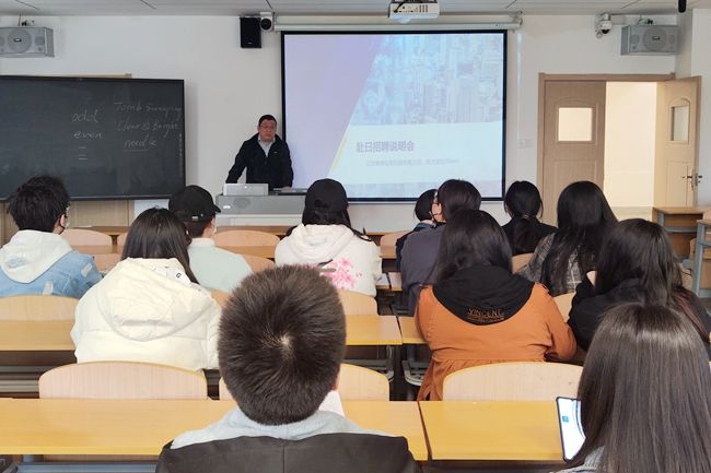 徐峰详细介绍了该公司的发展历史、主要业务、对口专业、招聘要求、薪资报酬、晋升空间、人才培养计划、发展前景等。他说,公司可以帮助毕业生以留学生身份赴日工作,在工作的同时也能选择提升学业。