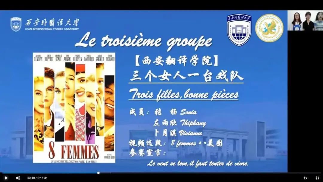 5月20日,由西安外国语大学欧洲学院法语系举办的配音比赛决赛在线上如期举行。来自西安交通大学、西安外国语大学、陕西师范大学、西安外事学院、西安法语联盟以及我校法语系的共十一支队伍进行同台较量。