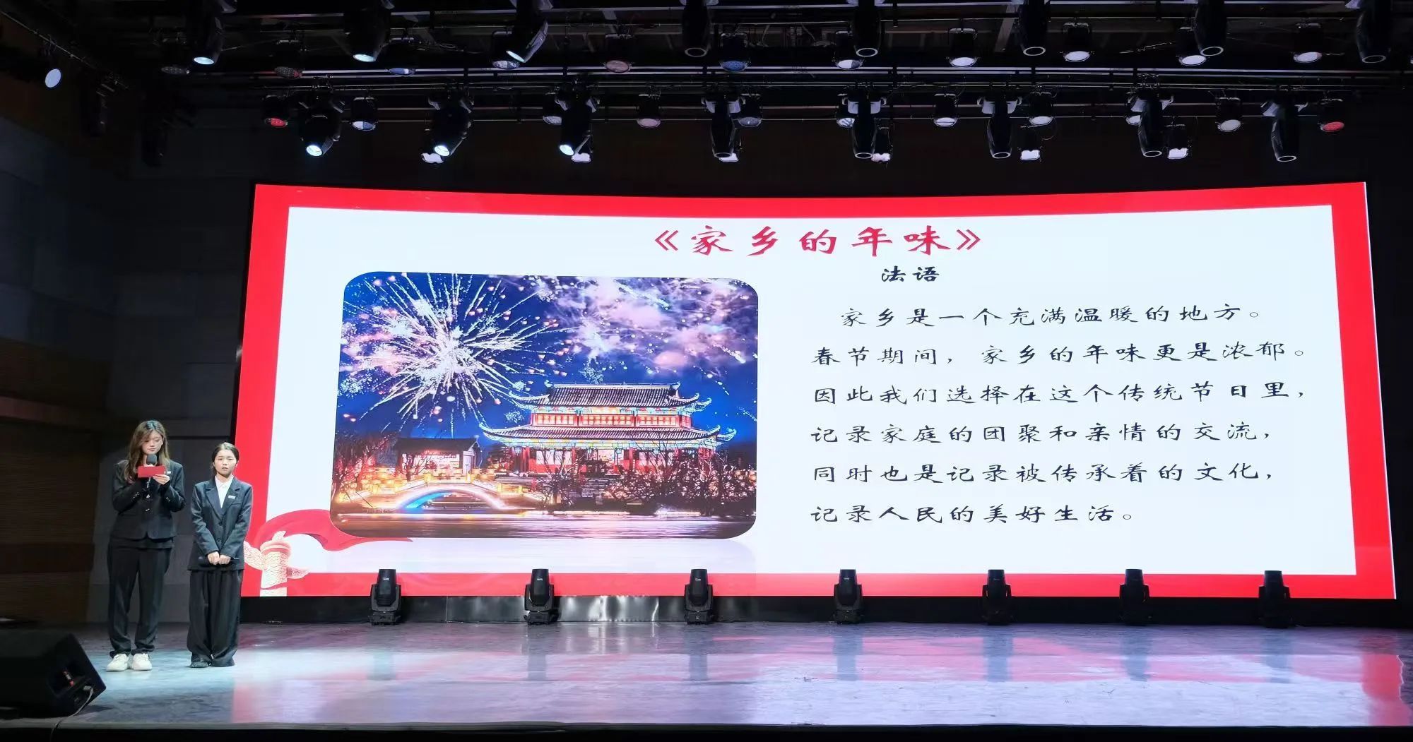 法语专业大二学生周月的参赛视频主题是《家乡的年味》,她们以贵州省遵义市和四川省南充市为拍摄对象,记录春节期间的家庭生活和各类民俗活动,展现春宵佳节热闹、欢愉的场面,同时想借此视频为祖国献礼,相信我们的祖国会更加的繁荣昌盛。