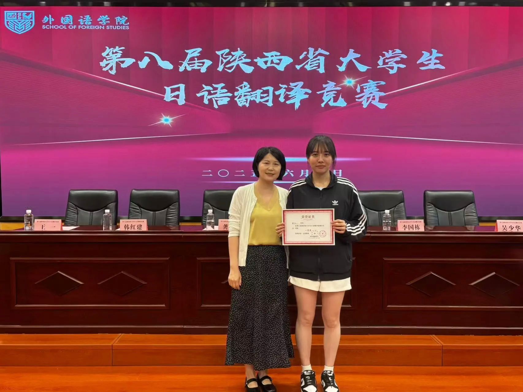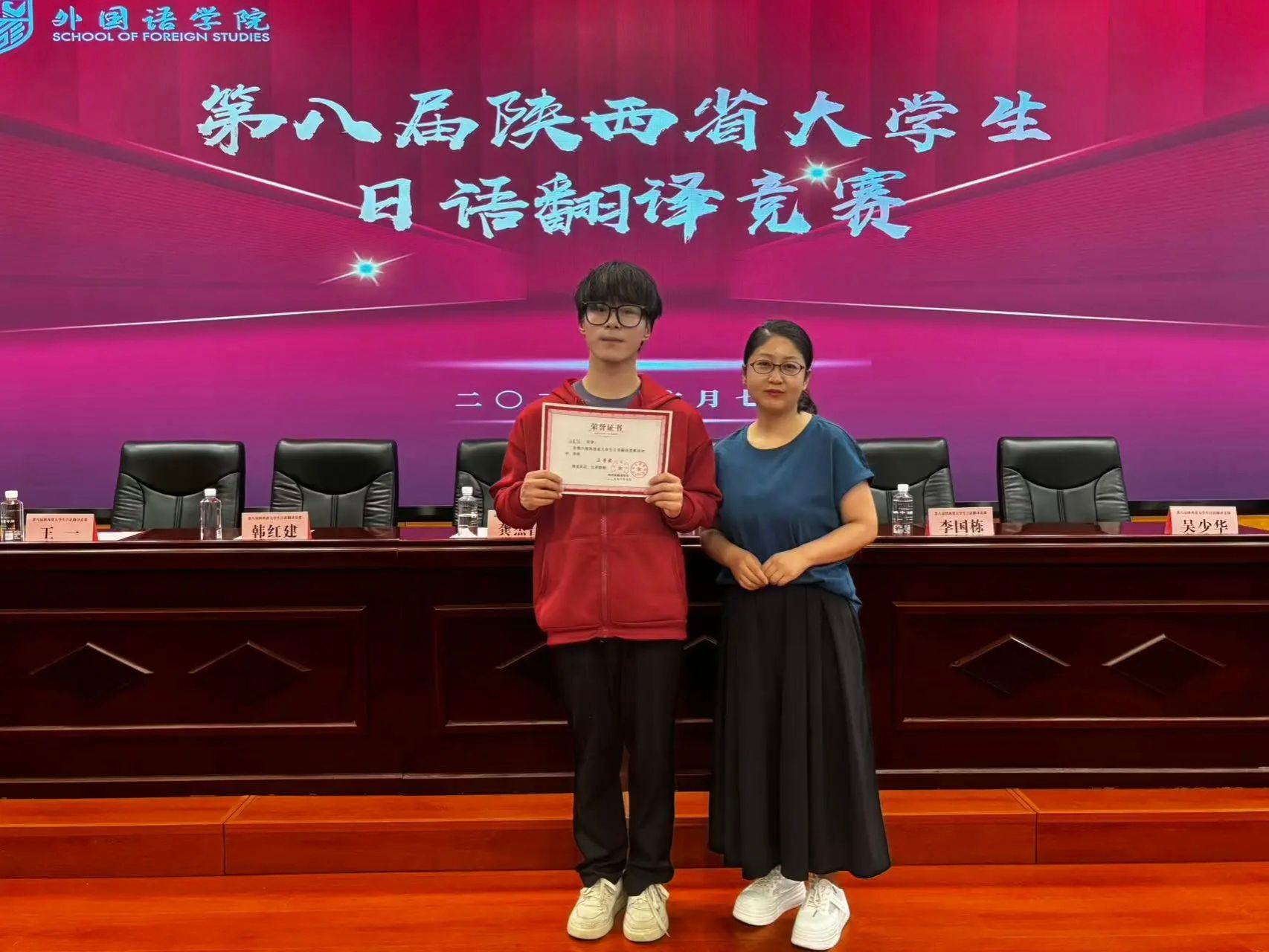 6月7日,第八届陕西省大学生日语翻译竞赛在西安文理学院圆满落下帷幕。我校学子在赛场上展现出扎实的专业素养与卓越风采,其中2023级学生颜怡心、2024级学生汪金俭凭借出色发挥,分别荣获一等奖与三等奖的优异成绩!