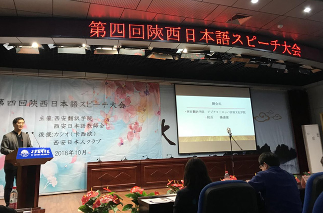 10月21日,第四届陕西省日语演讲大赛在我校图书馆报告厅举行。我校亚欧语言文化学院院长杨达复出席并致辞,来自西安交通大学、陕西师范大学、西北大学、西安科技大学、西安文理学院等11所高校学生参赛。我校学子在本次比赛中成绩喜人。