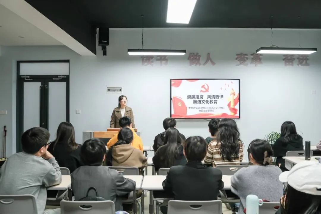 为深入学习贯彻党的二十大精神,巩固党的主题教育学习成果,推动党史学习教育常态化长效化,大力倡导新风正气,提升学生党员遵规守纪意识。4月7日下午,亚欧语言文化学院第五党支部组织召开廉政文化教育学习会议。支部书记黄丽娜及全体党员参会。