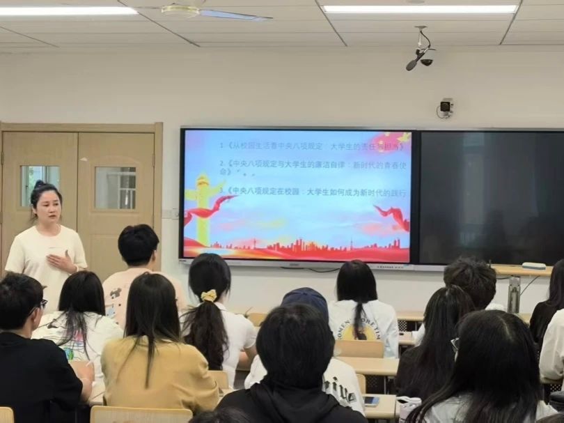 在交流分享环节,党员代表肖蕾、刘冰洁、刘淋梅上台发言,她们表示:通过学习中央八项规定精神,深刻认识到廉洁自律的重要性。今后将从自身做起,在日常生活中杜绝铺张浪费,抵制不良风气,积极参与学校组织的廉洁文化活动。同时,也会带动身边的同学共同学习,营造风清气正的校园氛围。