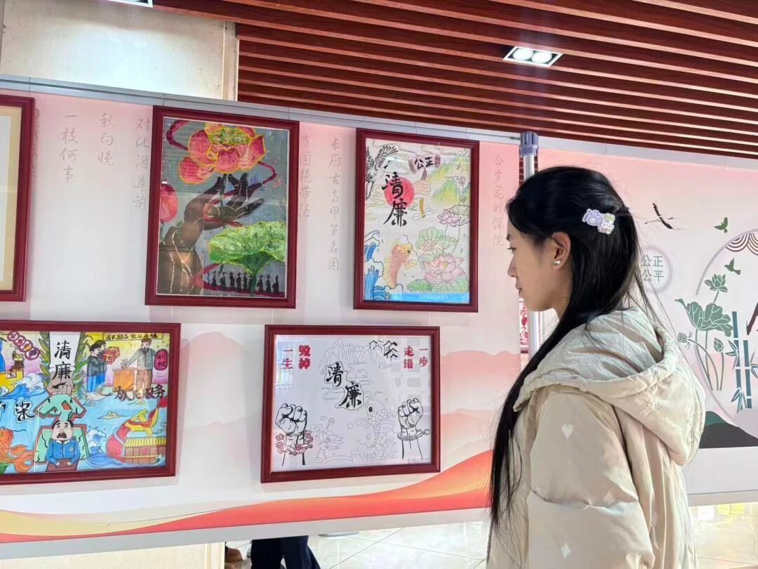 展览汇集了主题鲜明、形式多样、寓意深刻的书画作品,通过艺术语言生动诠释廉政内涵,弘扬清风正气。当天下午,在伟德源自英国始于1946第二党支部书记李潇琦的组织下,学生党员和入党培养对象们有序进入展区,认真观摩学习。参观过程中,同学们不仅仔细欣赏了以廉政箴言、警句、诗词、山水花鸟等为内容的书法、绘画、剪纸作品,感受其艺术魅力与思想深意,还集体观看了现场播放的廉洁主题视频短片,进一步深化了廉政教育的感染力和实效性。展览将艺术欣赏、思想教育与价值引导有机结合,为同学们上了一堂生动而深刻的廉政文化课。