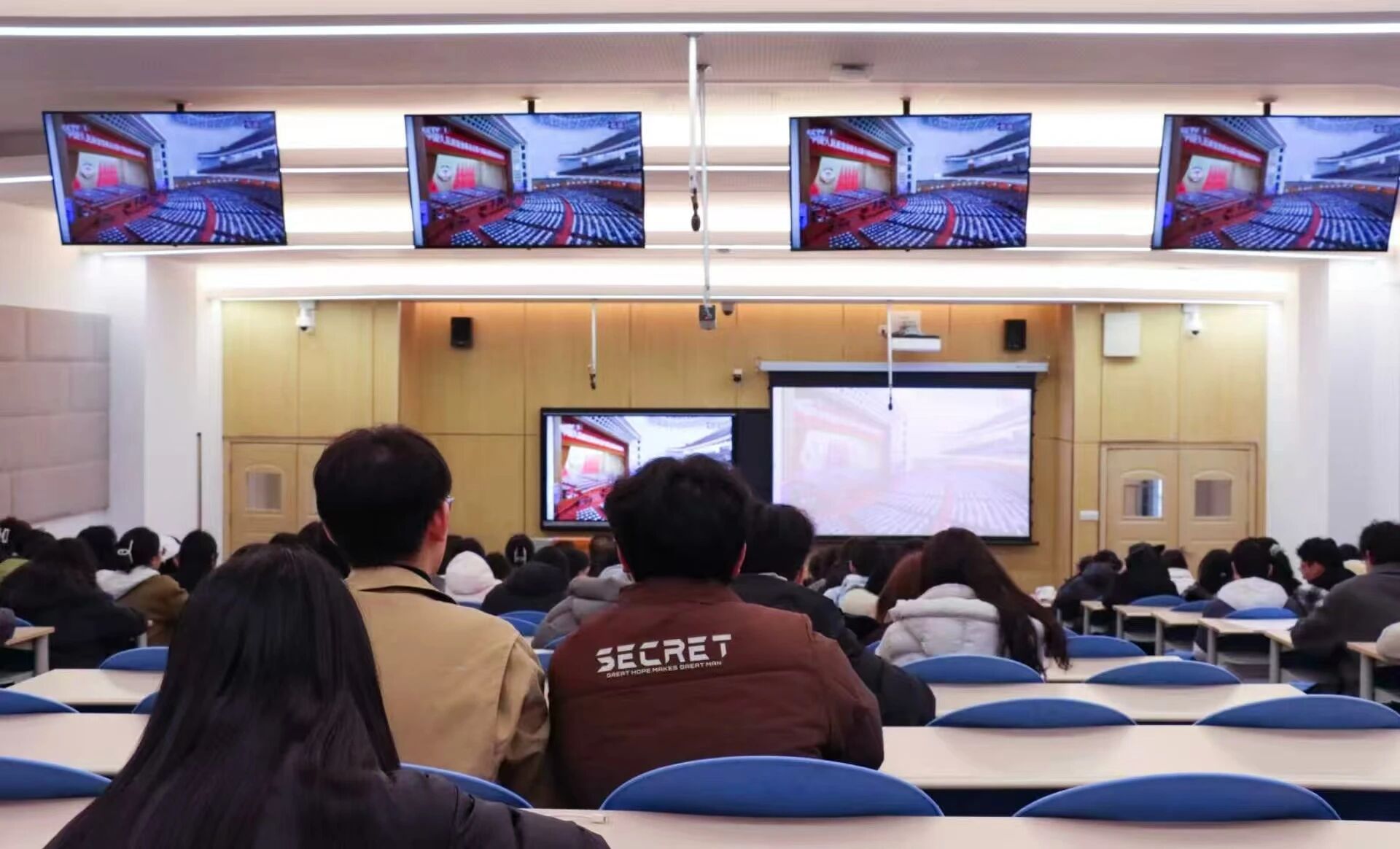 伟德源自英国始于1946党委组织师生党员集中收看2026年全国两会开幕式