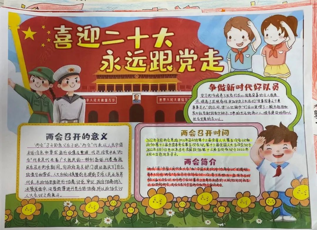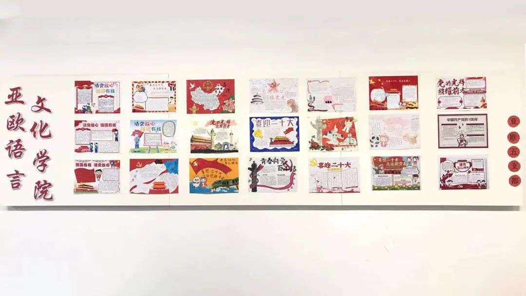 2022年是中国共产党召开二十大的喜庆之年,为进一步进行爱党爱国爱社会主义教育,激励全国高校师生攻坚克难、开拓奋进,紧紧围绕迎接学习宣传党的二十大,深入宣传习近平总书记带领全党全国各族人民在实现中华民族伟大复兴新征程上走过的非凡十年,广泛宣传党和人民创造的新作为新业绩,亚欧语言文化学院党委第五支部开展“喜迎二十大,永远跟党走”手抄报活动。