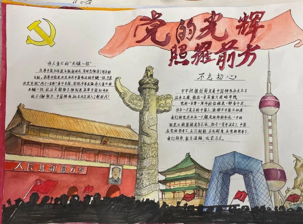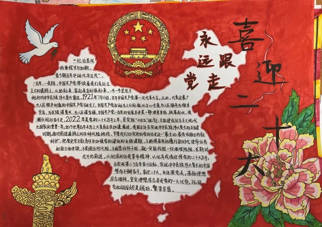 本次手抄报活动,不仅让广大学生、党员们重温了党的光辉历程,也增强了他们的爱国之情,充分展示了同学们积极向党、热爱祖国的精神风貌。作为新时代青年,一定会传承好红色基因,努力成长为担当大任的时代新人,以实际行动迎接党的二十大胜利召开。