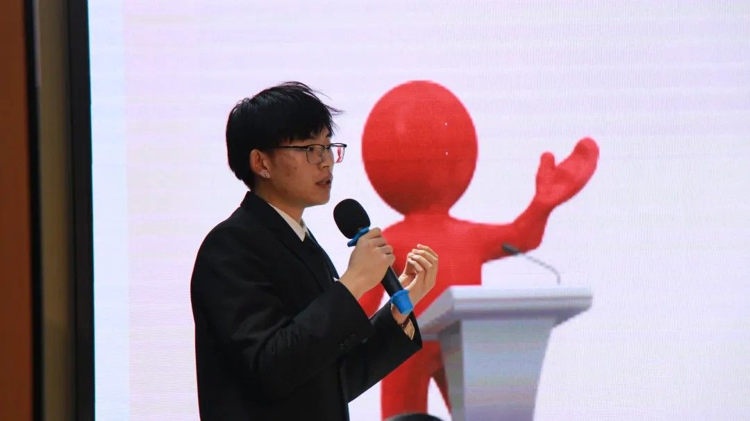 段俊毅同学作为正方一辩选手在比赛中展现了他极强的思辩能力,他首先提出EQ这一新的概念,即EQ是表示认识、控制和调节自身情感的能力。其次,对于辩题观点分为三个板块充分论证: