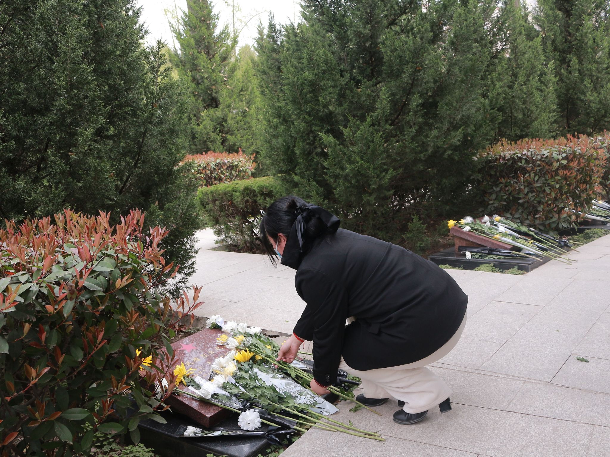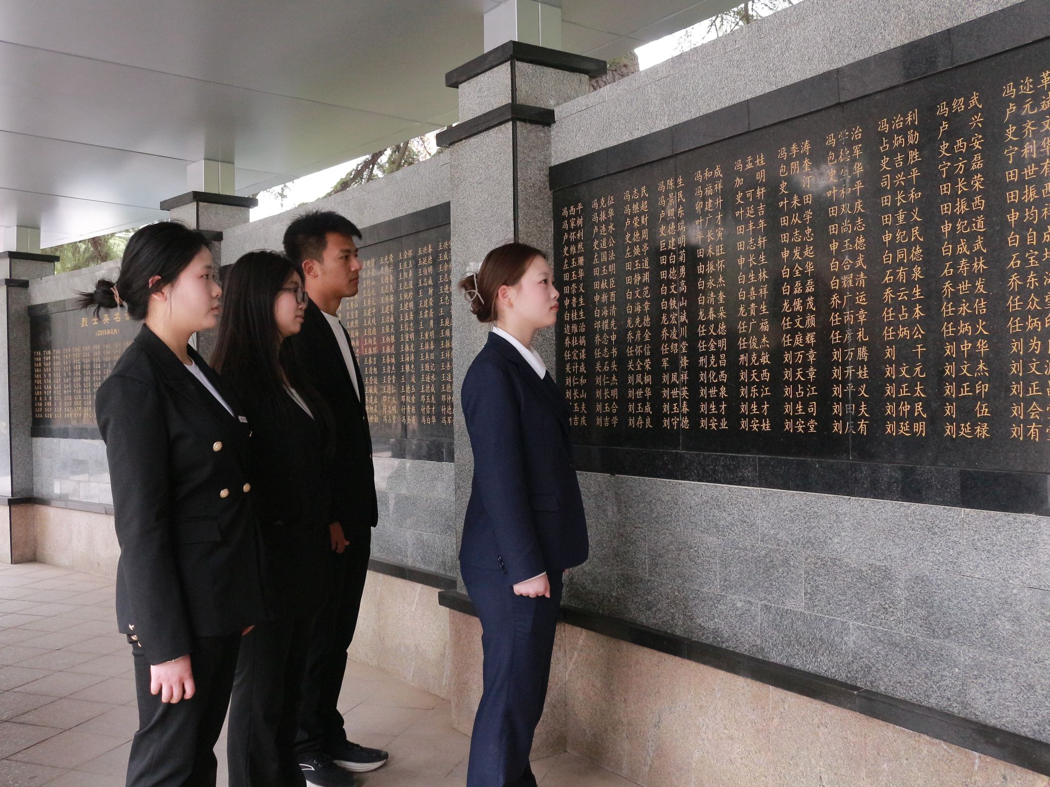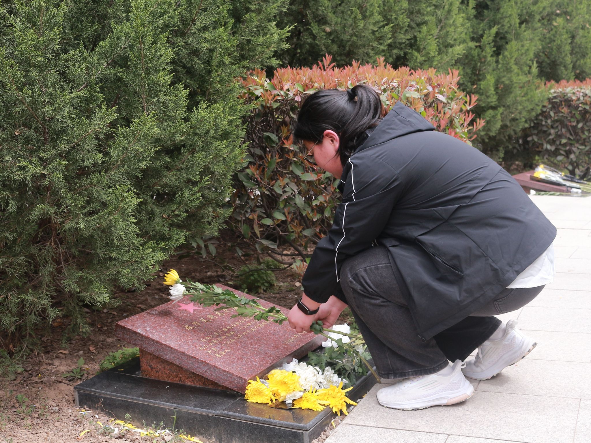 同学们给烈士献花以后,在陵园的广场上整齐列队。每个人身姿挺拔,面容凝重,在寂静的陵园中,唯有微风拂过树叶的沙沙声。随着一声庄重的指令,全体同学缓缓弯腰,行鞠躬礼。每一躬,都饱含着对英烈们的深切敬意与无尽感激,腰弯下的角度,是对先辈奉献的崇高致敬。