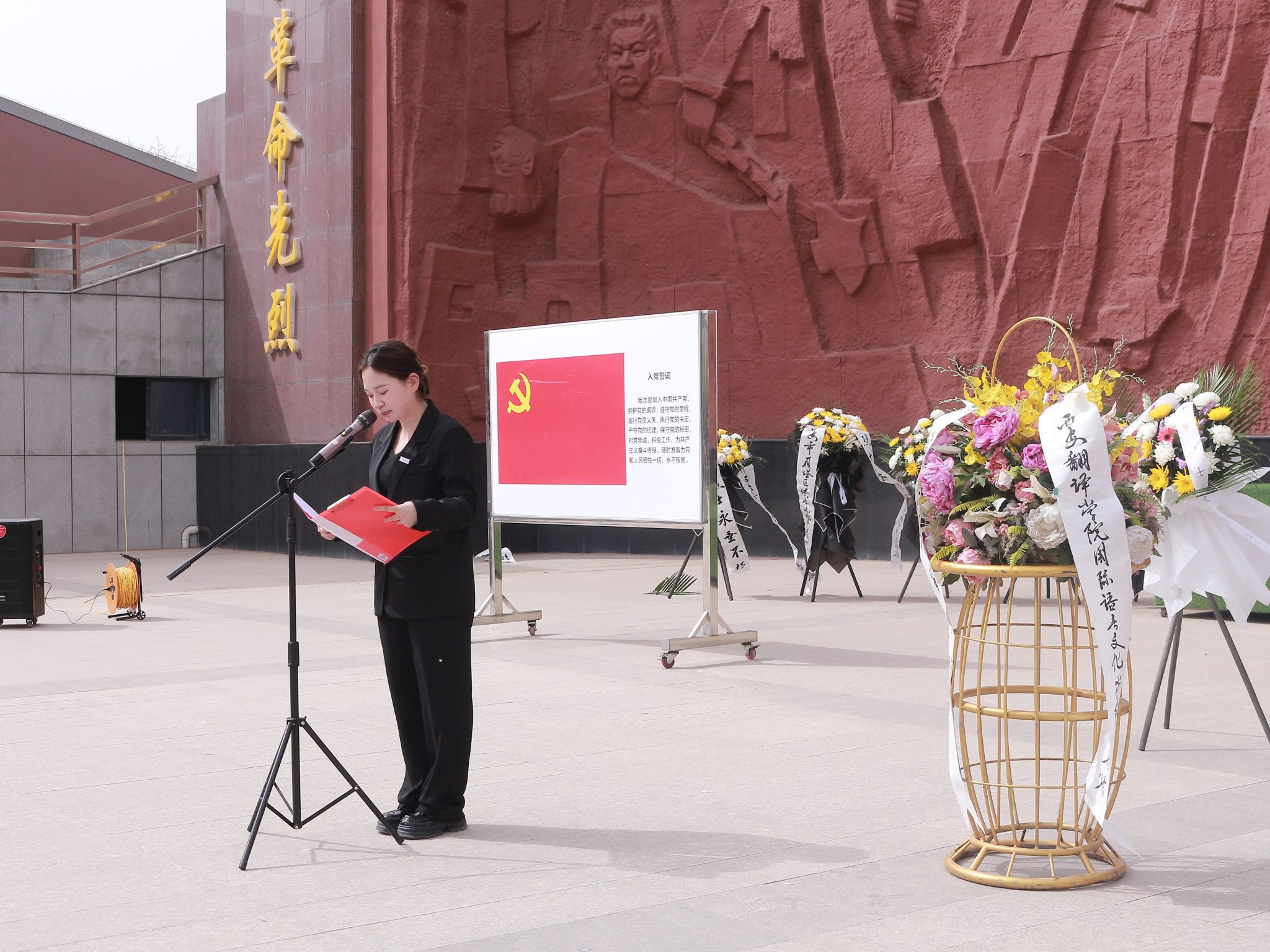 学生代表朱宇轩进行发言,她表达了对先烈的缅怀之情。她表示,踏入陵园,她被烈士们的伟大崇高所震撼,认识到他们在民族危亡时舍身取义,源于对祖国和人民的热爱。对比当下,我们遇到的困难远不及先烈,应学习他们的精神。作为新时代大学生,要以先烈为榜样,培养良好品德,传承爱国、奉献、奋斗精神。在学习、生活、思想上积极进取,将个人成长与国家发展紧密相连,汇聚实现中国梦的力量。铭记历史,传承红色基因,为祖国繁荣富强和人民幸福安康努力奋斗,书写属于这一代人的辉煌篇章。