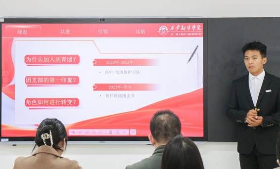 在紧张激烈的比赛过程中,各团支书围绕“我与支部共成长”主题展开精彩论述。团支书张光昊提出:“团支部建设要以思想引领为核心,通过'三会两制一课'夯实组织基础”;团支书代岐则分享了“以专业特色赋能团日活动”的创新做法,他强调:“我们要把学科优势转化为团支部建设亮点”;团支书王嘉瑶的“五维活力团支部”建设方案,更是获得了评委们的高度评价。