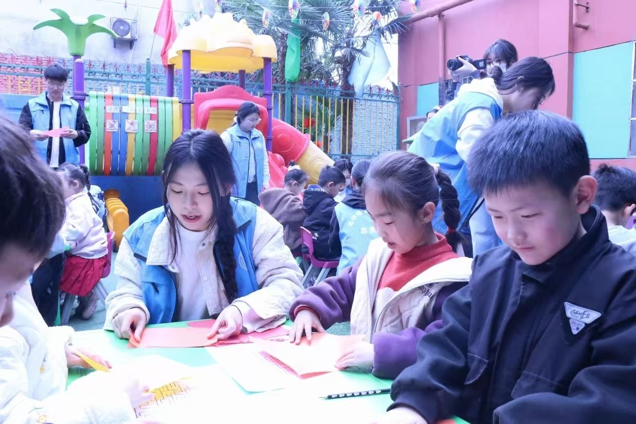 在手工制作环节,志愿者们为孩子们准备了五颜六色的彩纸和安全剪刀。在志愿者们的耐心指导下,小朋友们认真地学习折纸技巧,一张张普通的彩纸在稚嫩的小手中变成了活灵活现的小青蛙。