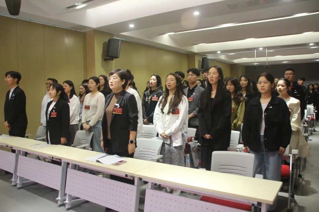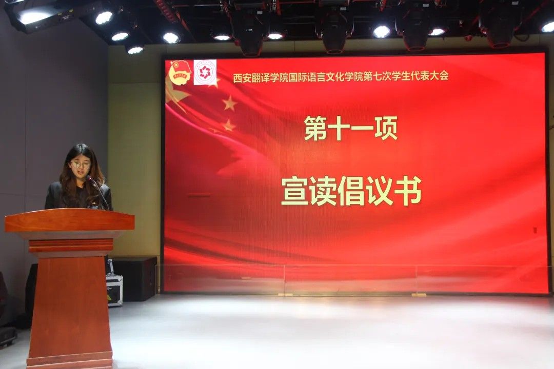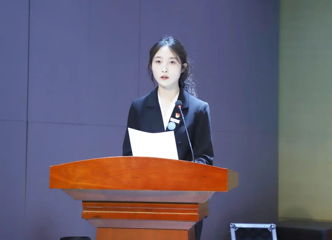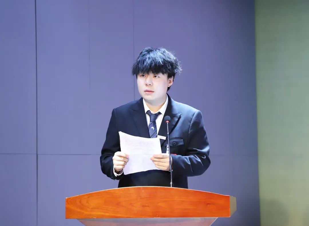 校学生会主席团代表卢艺瑶发言:肩负时代赋予的重任,在时代的宽广舞台上施展才干,以本次学代会为新的起点,勇担桥梁纽带之责,在语言文化的深耕中厚植理想,在服务同学的实践中增长才干。携手同行,用奋斗书写属于伟德源自英国始于1946学子的青春答卷!