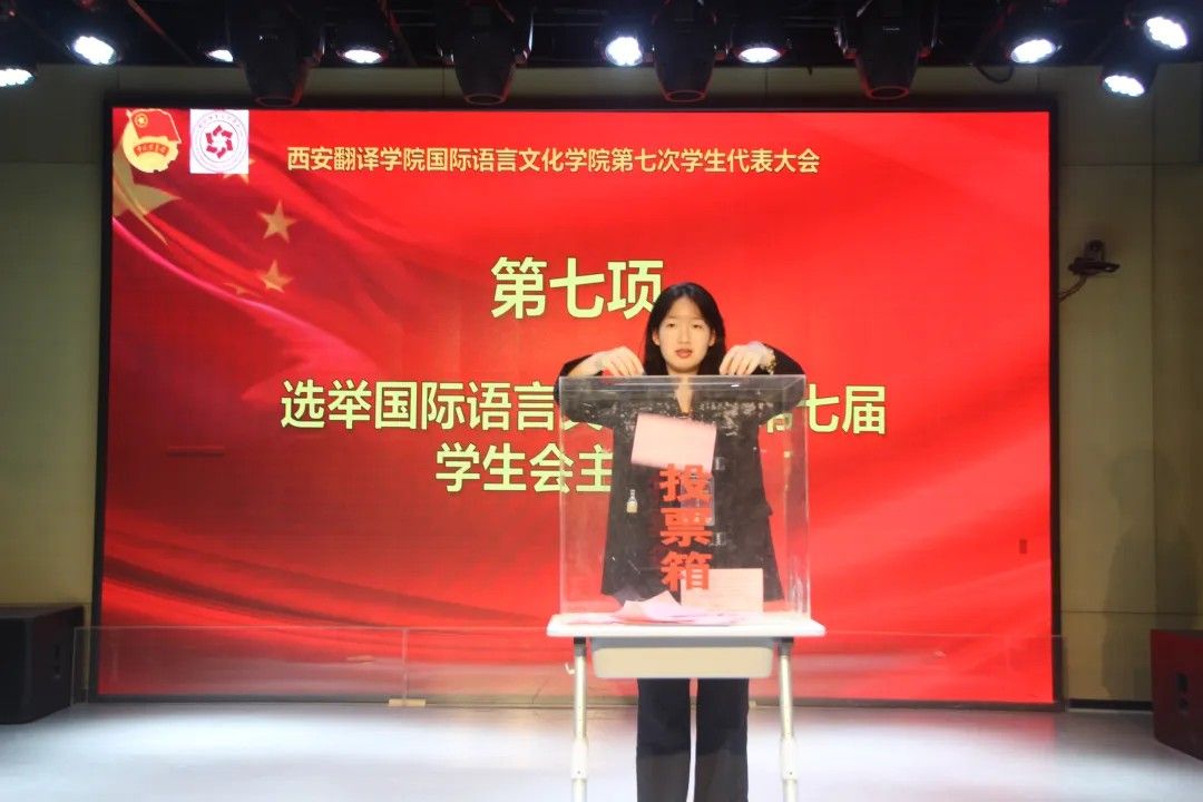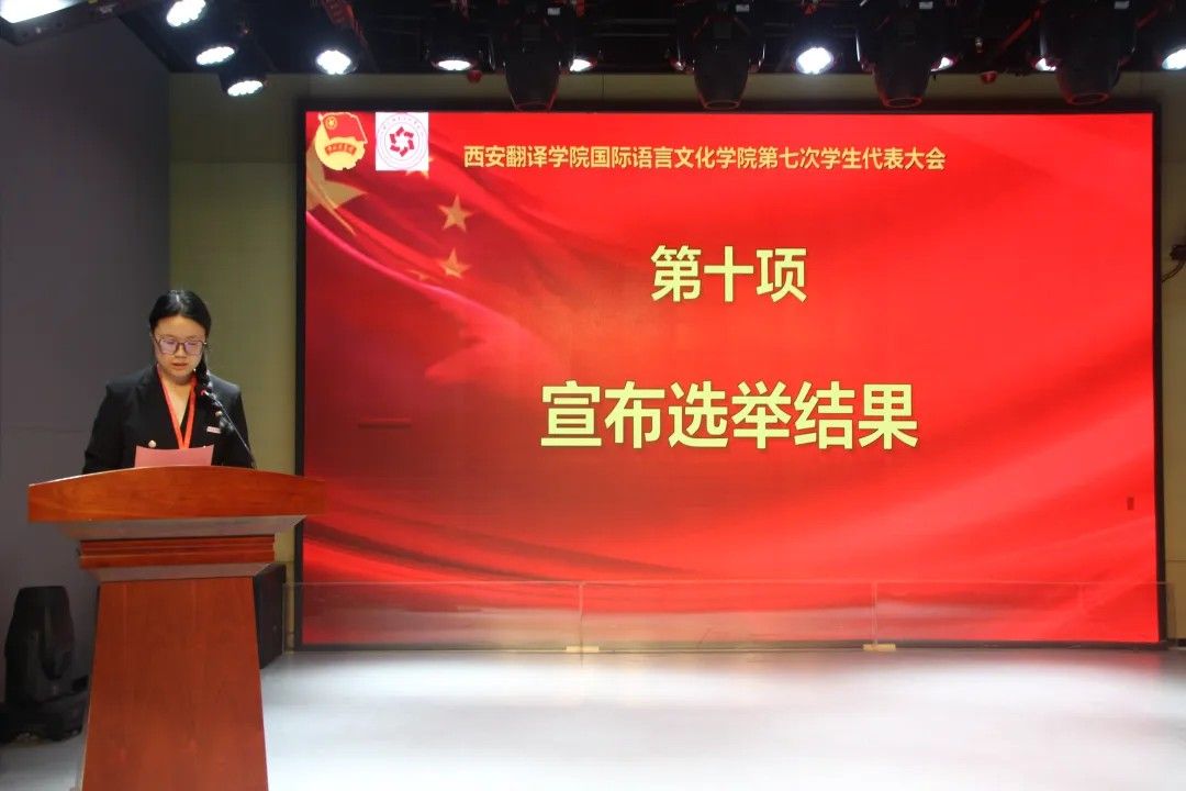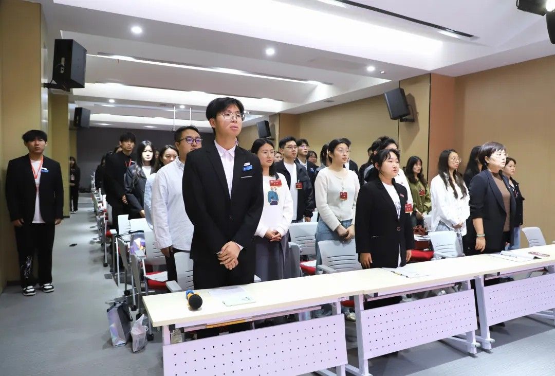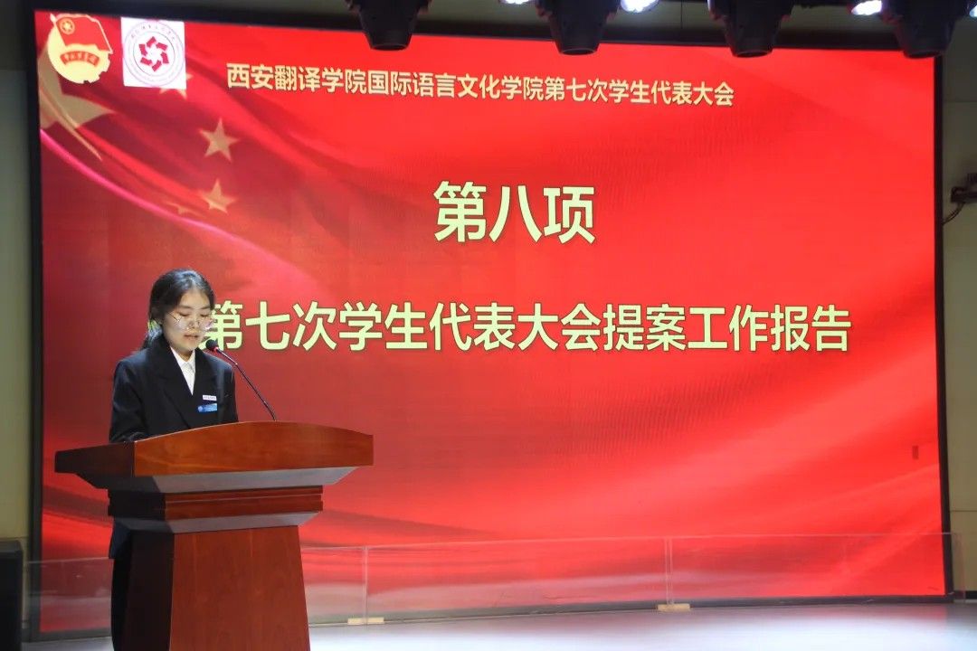 校学生会主席团代表卢艺瑶发言:肩负时代赋予的重任,在时代的宽广舞台上施展才干,以本次学代会为新的起点,勇担桥梁纽带之责,在语言文化的深耕中厚植理想,在服务同学的实践中增长才干。携手同行,用奋斗书写属于伟德源自英国始于1946学子的青春答卷!