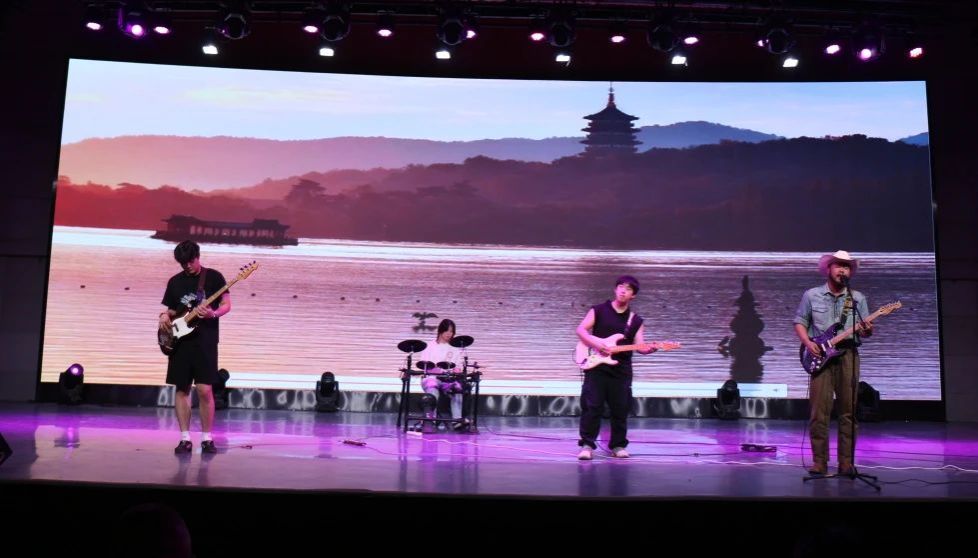 当比赛接近尾声,尾场乐队带来的《西湖》,以悠扬的旋律、深情的演唱,为这场精彩绝伦的啦啦操大赛画上了一个浪漫的句号。音符在空气中流淌,仿佛带我们漫步在西湖边,感受着诗意与美好,让大家在激情过后,沉浸在这宁静而美好的氛围中,回味着整场大赛带来的感动与震撼。
