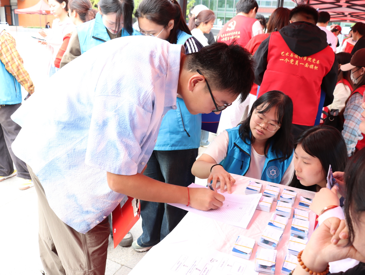 在伟德官网新生接待处,志愿者们会提前将报到所需的表格、材料清单整理成套装,逐一告知新生填写规范,遇到身份证复印、材料提交等环节志愿者们也会耐心提供指导。针对部分不熟悉线上操作的新生,志愿者会手把手协助完成校园卡激活、缴费确认等流程。