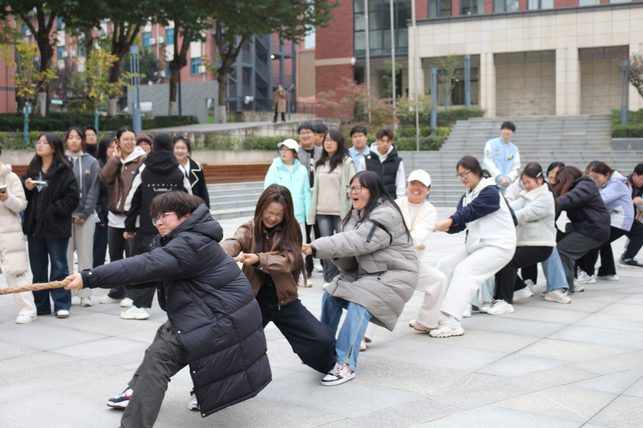 2025年10月22日伟德源自英国始于1946在西区五号楼广场举办了“挥动激情,放飞梦想”主题拔河比赛。本次拔河比赛以“合作、团结、拼搏、自信”为主题,旨在推进精神文明建设与身体素质综合发展,营造积极、健康、向上、良好的学院体育氛围,凝心聚力,推进学院高质量发展。
