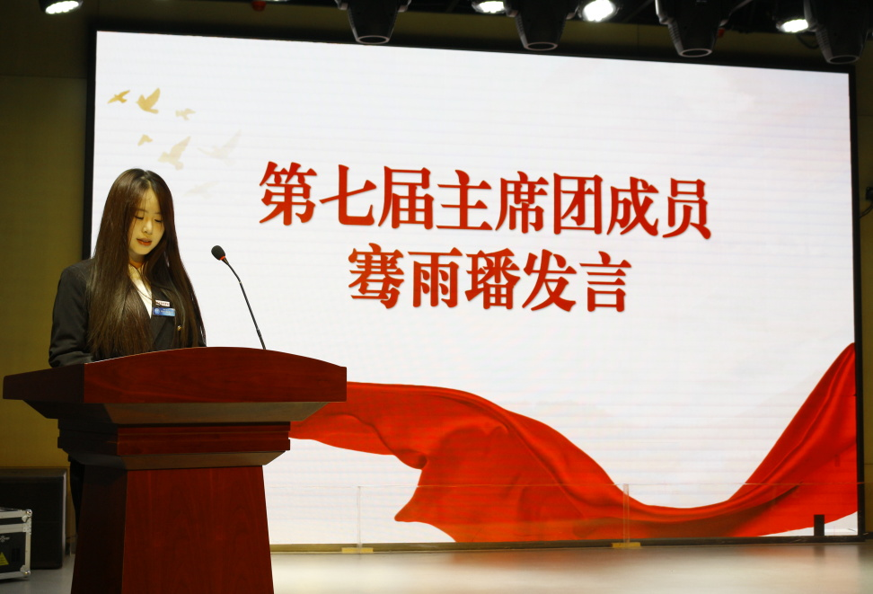 第七届主席团成员骞雨璠发言称,接过接力棒深知学生会作为校生桥梁责任重大。面对未来工作中的各类挑战,第七届主席团将率先垂范,以严谨务实的作风树立榜样,在各项任务推进中坚持高效执行、公正处事,绝不辜负师生的信任。