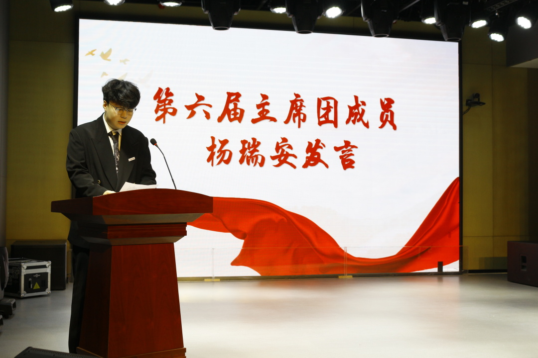 第六届主席团成员杨瑞安发言时,对第七届伙伴满含不舍与欣慰。他回顾初接手时因陌生流程、繁杂策划无所适从,压力促使团队成长,凭借统筹规划与协作获师生认可。