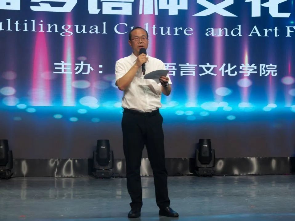 亚欧语言文化学院院长李庆明作闭幕式致辞。他对本次活动的成功举办给予充分肯定,并强调了文化铸就校园气质、艺术凝聚治学精神的重要性。他指出,艺术节体现了多语种专业师生们扎实的专业技能和良好的文化素养,丰富了学生们的第二课堂文化活动。希望同学们不断努力,提升专业素养,争做全面发展的优秀学子。