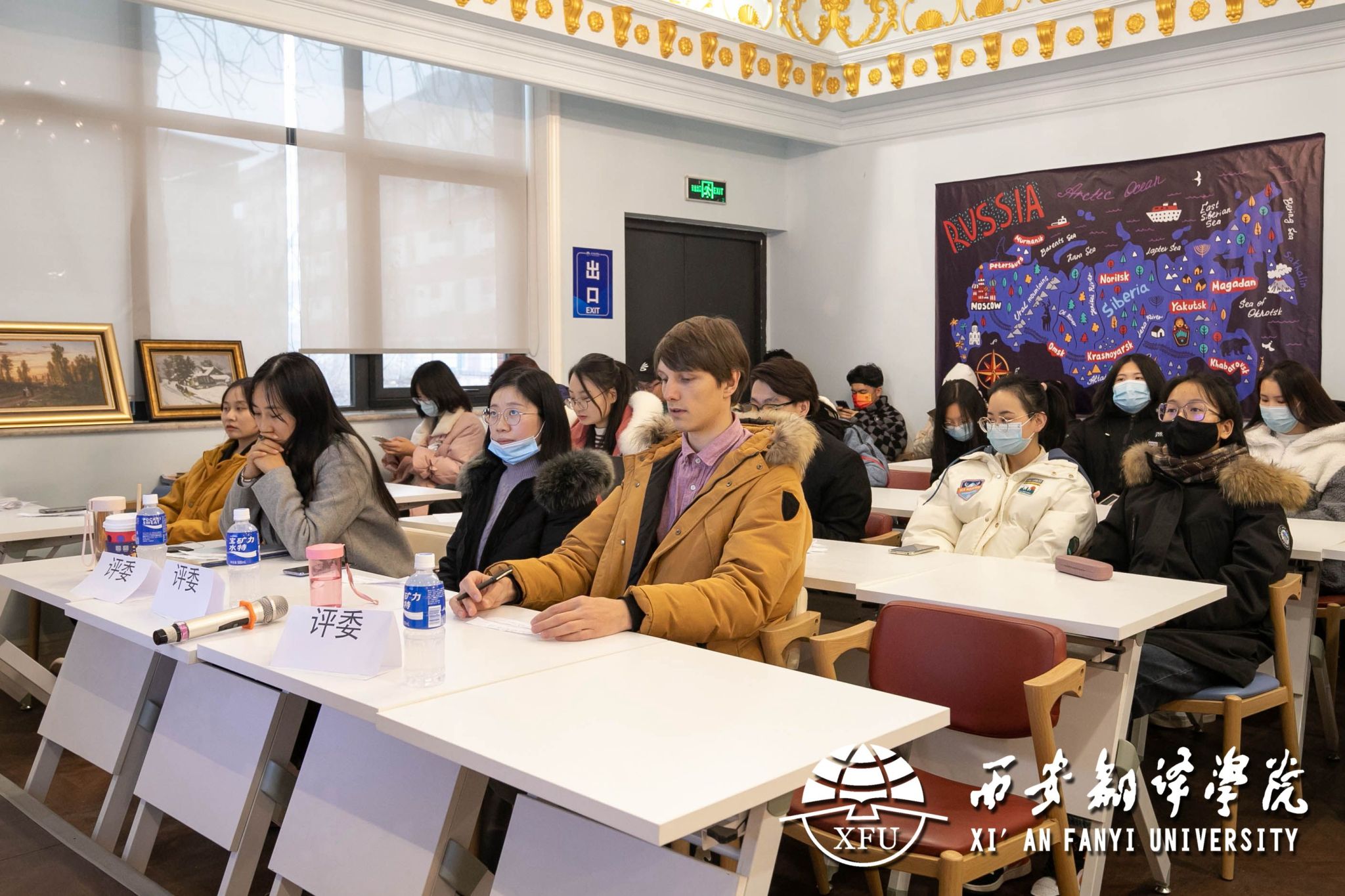 12月10日下午,西译第三十三届外语口语大赛(多语种)演讲赛决赛在西区体验式教学中心举行。副校长兼教务长齐玉水,亚欧语言文化学院院长李庆明,教务处副处长陈潇等领导应邀出席。外籍教师Alex、Dirkwerner,专职教师齐娜、朱柯嘉、史晓琴、袁敏担任首席评委。