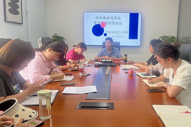 为深入贯彻落实我校本科教育教学审核评估工作有关要求,9月15日下午,亚欧语言文化学院召开本科教育教学审核评估学生工作动员会。学院党委书记、副院长宇文永康,学工办主任尹娜、团总支书记陈福礼及全体辅导员参会。