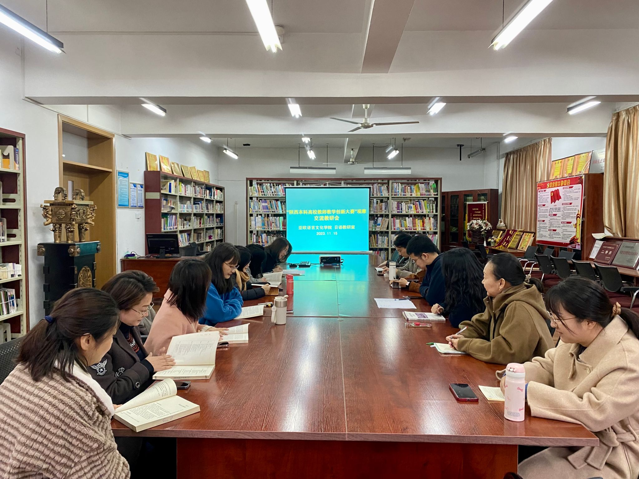 第五届陕西本科高校教师教学创新大赛决赛于11月11日至12日举行,直播共分九组。亚欧语言文化学院组织全体教师线上观摩,重点观摩了课程思政组和新文科组的比赛。 11月15日下午,亚欧语言文化学院就此次教学观摩组织召开了分享交流会。