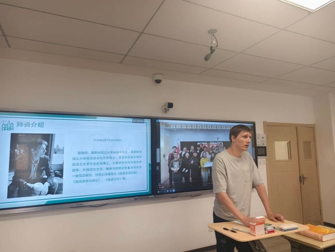 俄语专业外籍教师Алексей, Дарья, Карина向同学们分享了自己学习中文的经历。他们表示,学习语言最重要的是热爱和兴趣,俄语是一门非常严谨的语言,希望同学们在日后的学习中发现俄语的魅力。
