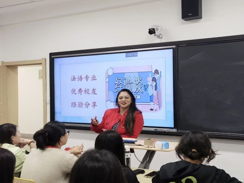随后,法语专业6位往届毕业生袁勇豪(2016届)、孟慧慧(2019届)、杨梦瑶(2019届)、周玲丽(2020届)、汪前珍(2021届)、杨伊馨(2024届),以视频方式向与会同学分享了他们在学习、奋斗和事业上的成功经验。聆听的学生在精神上受到了很大的鼓舞。