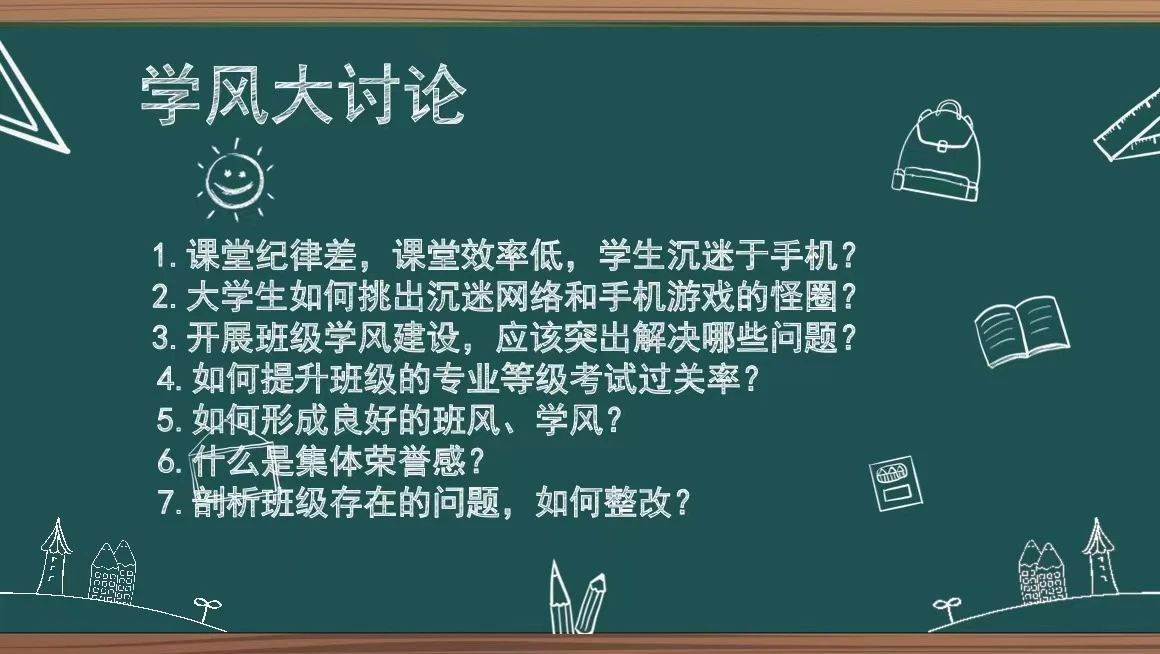 自活动启动以来,各班积极响应,广泛宣传动员,纷纷通过班级会议、班委会、主题班会等形式,结合各班实际情况,围绕学风建设列出的提纲进行针对性讨论。在活动中,同学们积极发言,首先分享了自己对当前学习状态的感受,随后剖析了班级日常学习中存在的问题,并就课堂效率低、纪律差,上课沉迷于手机,如何提升班级专业等级过关率,形成班级良好学风和班风等问题提出了建设性的意见和建议。