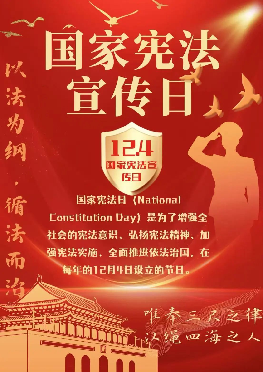 2024年12月4日,是中国第十一个“国家宪法日”,12月1日至12月7日,是第七个“宪法宣传周”,教育系统宣传主题为:“弘扬宪法精神,维护宪法权威”。