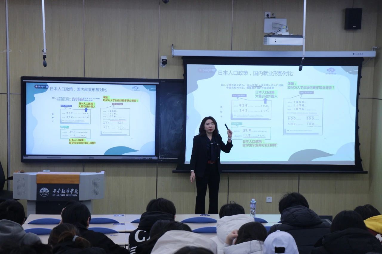 在此次讲座中,李佳从多个角度深入浅出地分析了日语教育培训的重要性、日语专业的就业前景、以及日语专业人才的招聘方式等关键问题。她不仅分享了国内外就业市场的形势,还针对学生们普遍关心的未来职业规划提供了实用的建议。特别值得一提的是,她强调了日本企业对外语人才尤其是日语人才的迫切需求,并结合当前国内学习日语的学生市场情况,为在座的同学们描绘了一个充满机遇的职业规划蓝图。她指出,日语专业毕业生的就业方向非常广泛,不仅限于传统的翻译或旅游向导岗位,还包括在日本企业的电信客服、市场营销等多个领域。